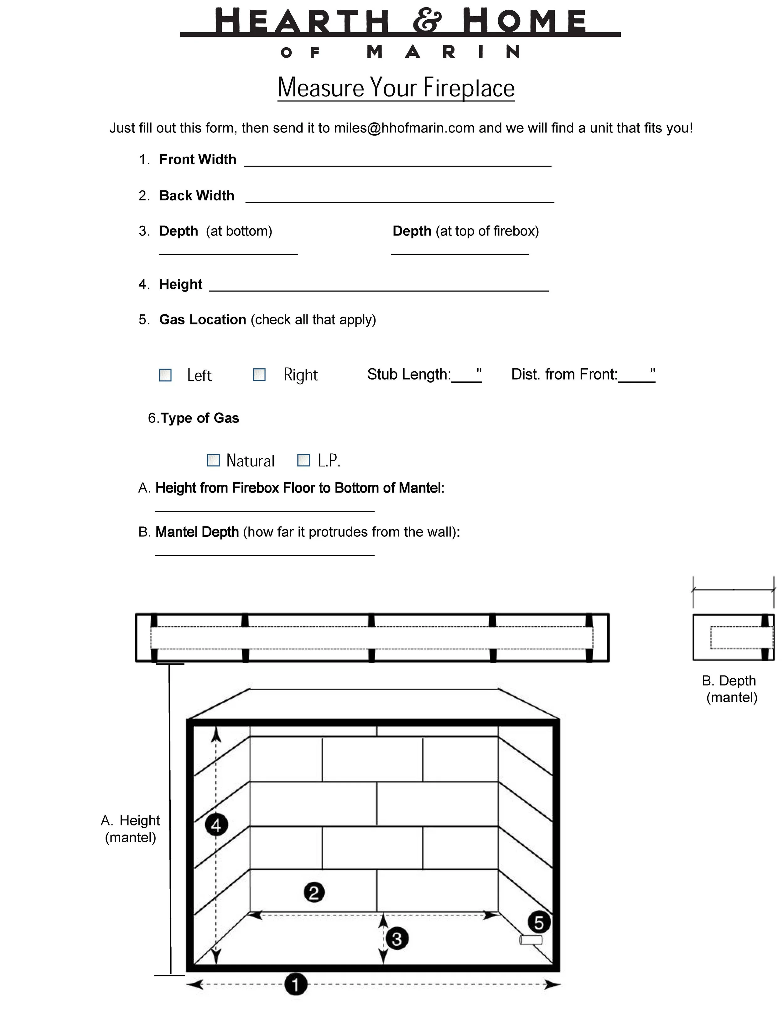 It’s helpful for us to have some pictures of your current fireplace, along with these measurements.